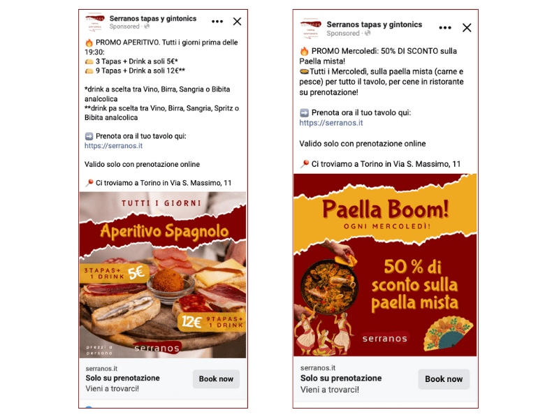 Abbiamo sviluppato campagne pubblicitarie su Facebook e Instagram mirate a un pubblico locale appassionato di cucina autentica e tapas spagnole. Gli annunci mettevano in evidenza le promozioni settimanali, studiate con cura insieme al cliente: alcuni esempi come “Paella Lovers” e “Jueves Locos,” stimolando nuovi utenti a provare il ristorante.